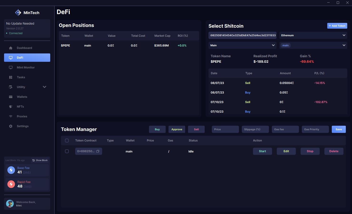 Next to the Sell button you see empty sections like: Price, Slippage, Gas Fee and Gas priority. These sections are used to make presets, so you can already put the values inside and save.
