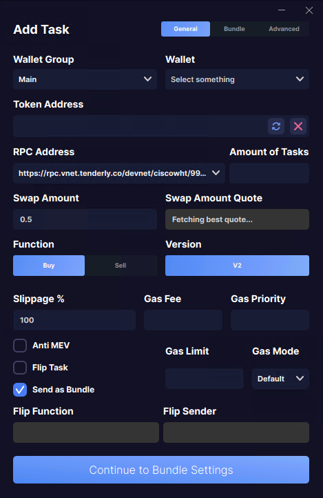 If you want to bundle multiple wallets into one transaction make sure to choose the wallets you want to use in the general task setup and not in the bundle task setup.&#x20;